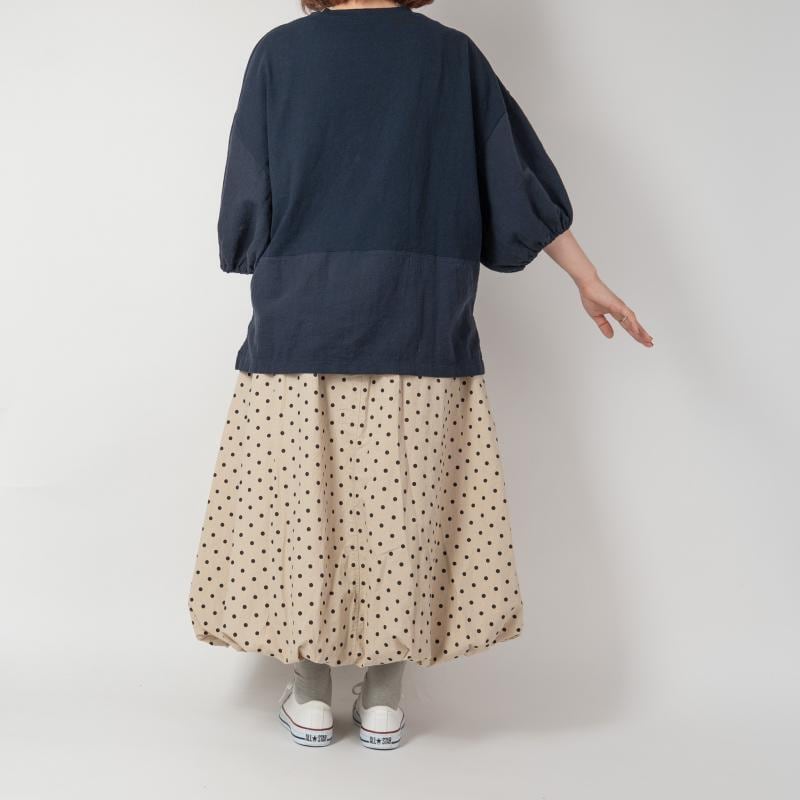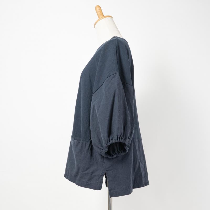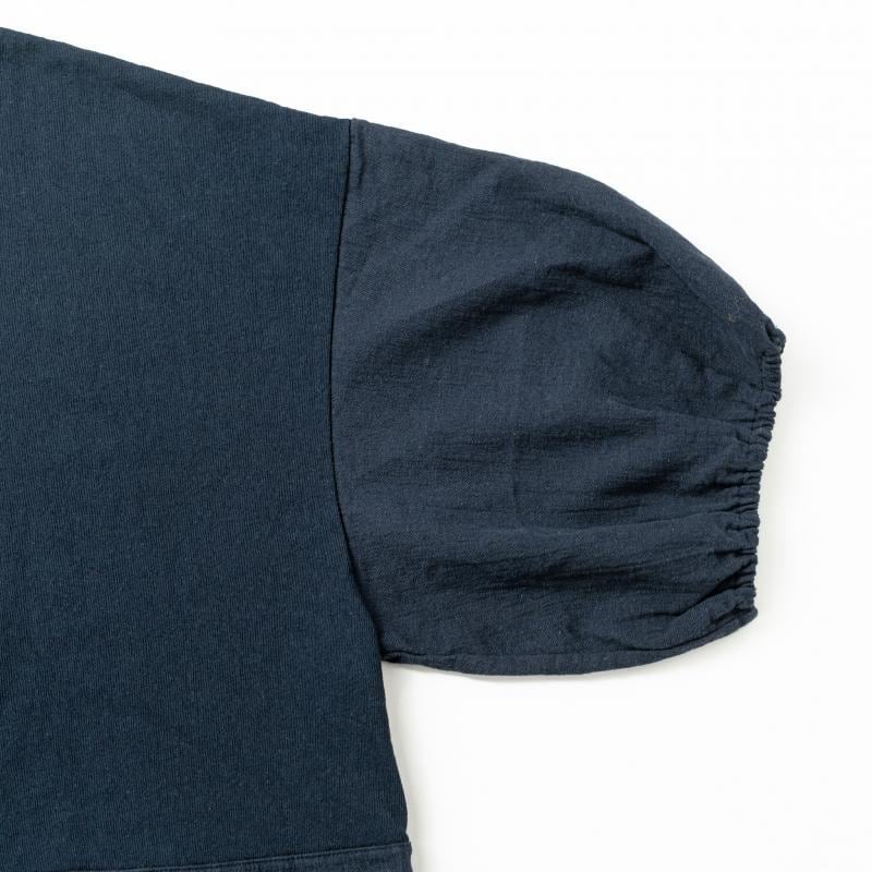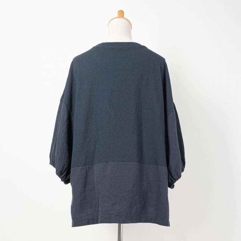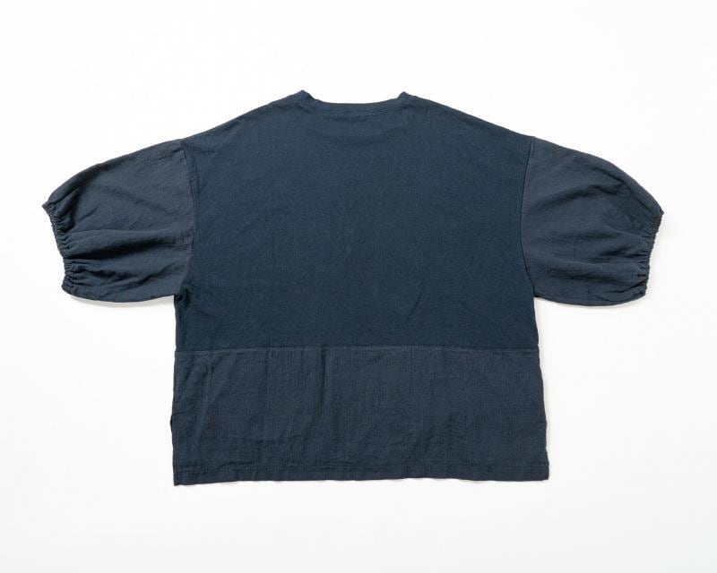 ナチュラルキャンバスx天竺切り替えPKワイドギャザー5分袖T