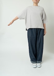 衿元のガゼットがポイントのワイドプルオーバーTシャツです。