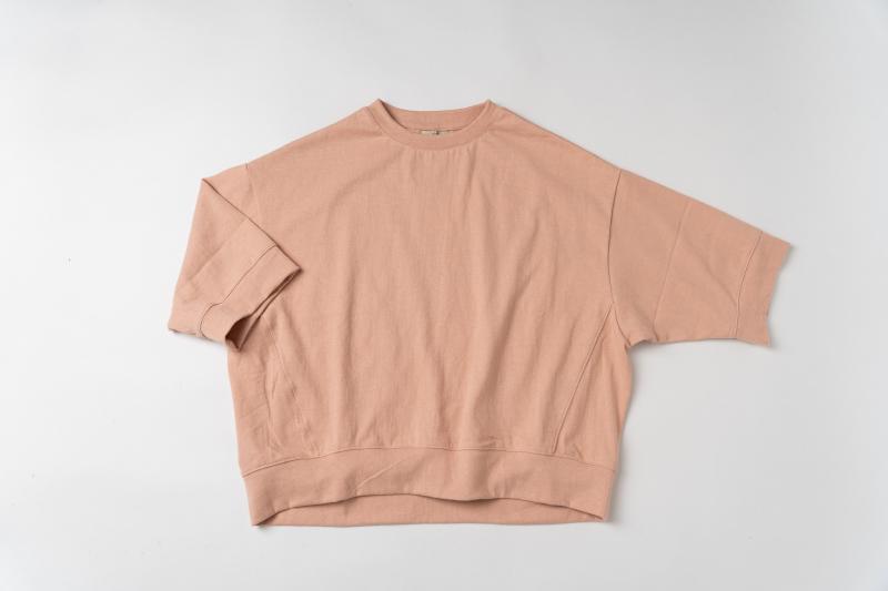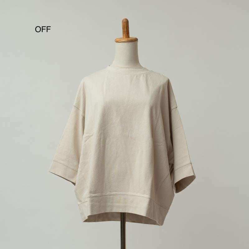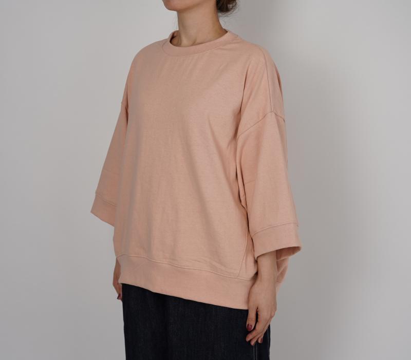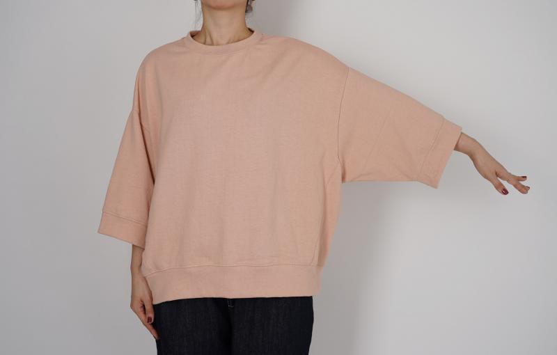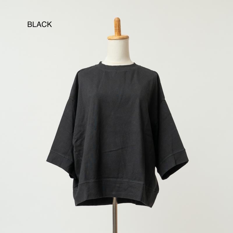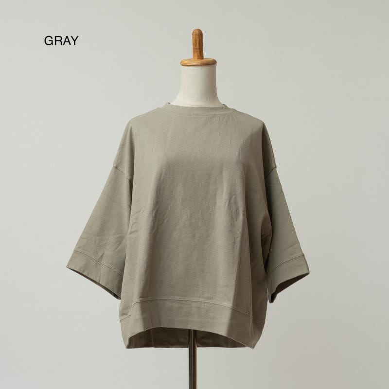 程よい厚みの綿天竺素材を使用したワイドシルエットの7分袖丈Tシャツです。