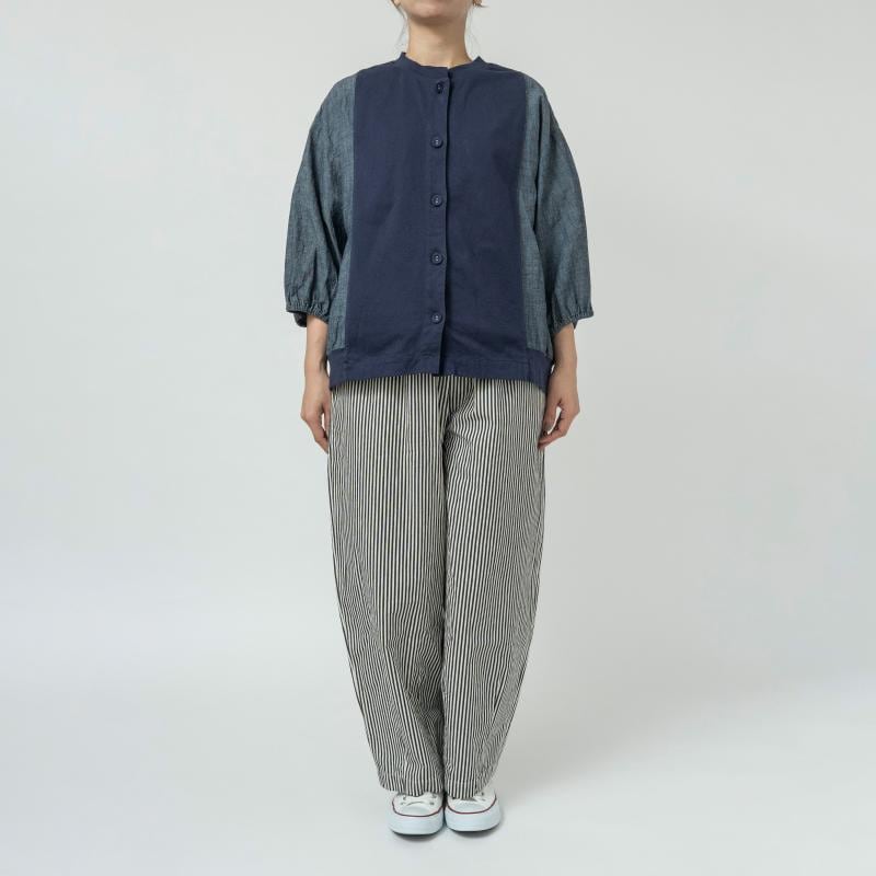 【再入荷】nonfadeデニム×OE天竺 切り替え7分バルーン袖CD