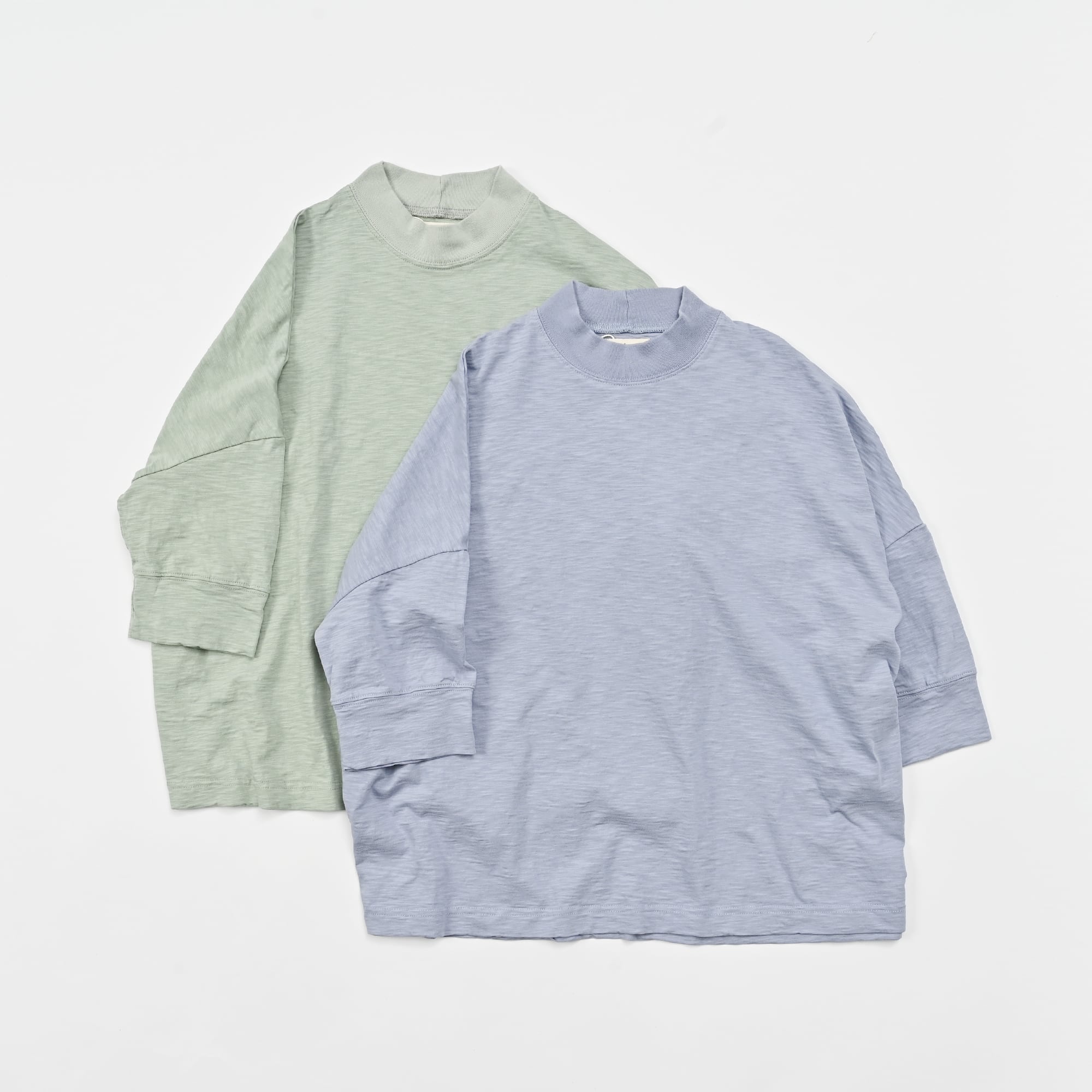 ワイドサイズでゆったりとしたボックスシルエット+モックネックデザインのプルオーバータイプのデザインTシャツです。