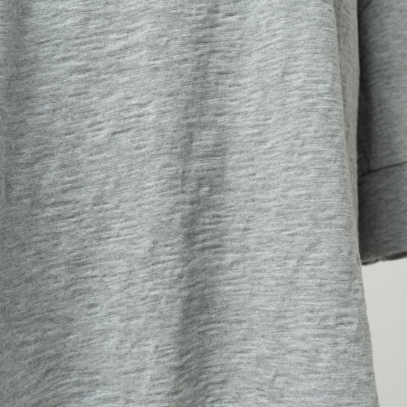 凹凸感のある表面変化が特徴の綿素材のスラブ天竺を使用、