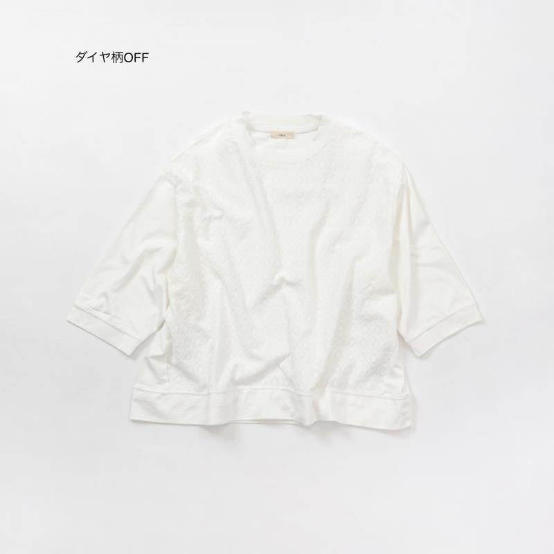 布帛レース柄切り替え裾スピンドル7分袖Tシャツ