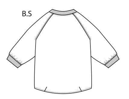 動きやすいラグラン袖、二の腕をふんわりカバーする5分袖丈に仕上げています。