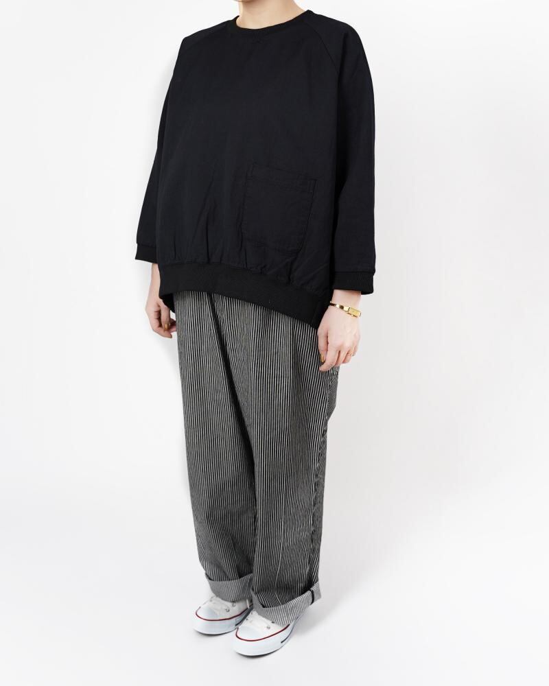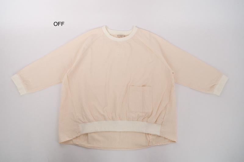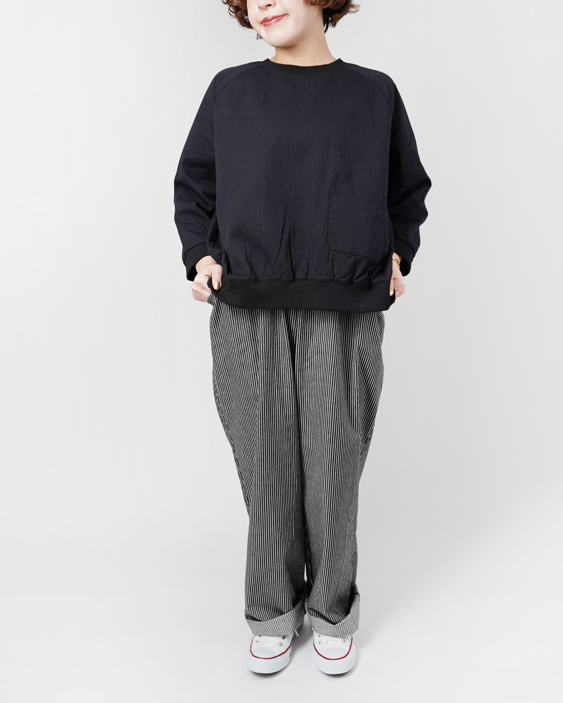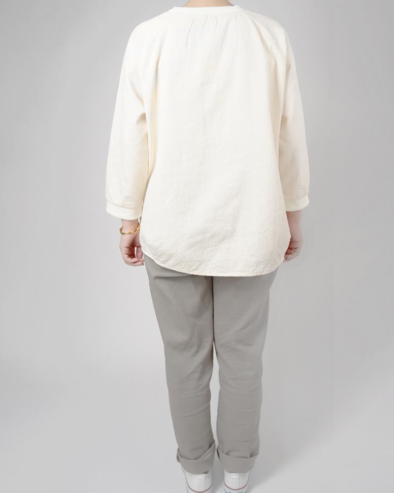 二重織ツイル衿リブラグラン8分袖プルオーバーブラウス